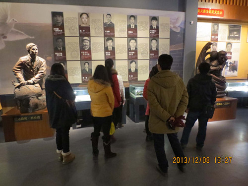 上午12时左右,在经历了大约一个小时的车程之后,大家顺利来到了位于乌鲁木齐市南郊的烈士陵园。完成登记后,在解说员的带领下大家按顺序参观了包括红星闪闪在内的几个展厅,瞻仰了包括陈潭秋、毛泽民等先烈的生平事迹以及他们在不同历史时期的手稿、诗作。两个小时的参观中,大家面色沉重,沉默不语,既为敌人的凶狠残暴感到愤恨,也为新疆解放、建设中牺牲的烈士们感到痛心。