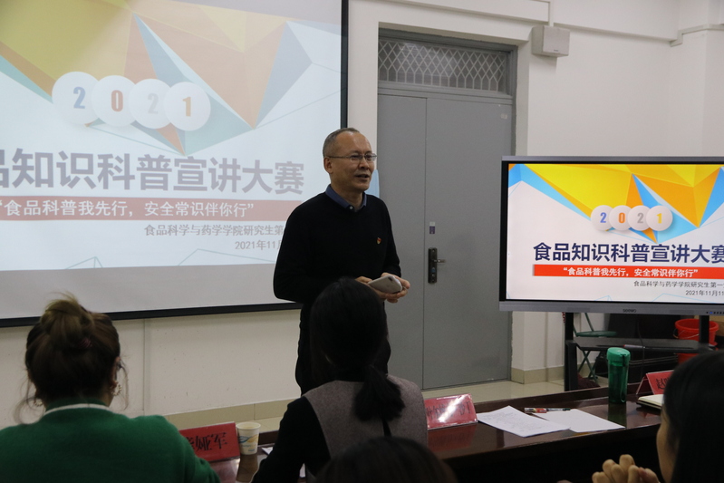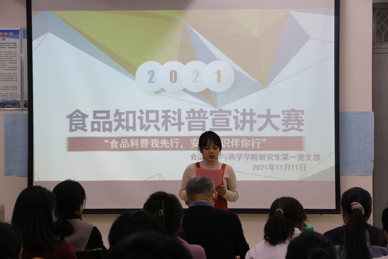 为大力弘扬志愿精神与科学家精神,扎实推进党史学习教育,普及食品科学知识,共建食安校园,11月11日,赌博网站 研究生第一党支部在工科楼513开展了以“食品科普我先行,安全常识伴你行”为主题的食品知识宣讲比赛。