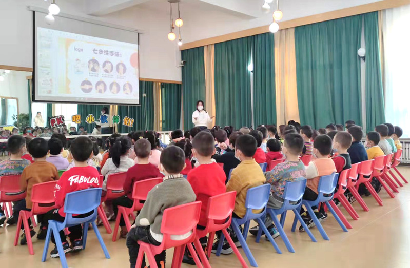 宣讲围绕“养成良好的卫生习惯”“食物中的营养元素”以及“合理安排一日三餐”三个方面开展,宣讲团成员、2020级研究生赵丹用生动活泼的语言为小朋友们讲解了如何正确的洗手,如何辨别“垃圾食品”“三无食品”,如何选择有营养的食物等,教会小朋友们基本的食品安全小常识。小朋友们毫不怯场,积极踊跃的进行互动回答问题,聪明可爱的他们使宣讲团成员在寒冷的冬日感受到了浓浓的暖意。
