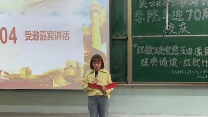 活动开始,由白云洁老师讲话。她表示在“五四”青年节之际,同学们欢聚一堂举办经典诵读·红歌比赛活动,对于同学们传承五四精神、坚定发展方向意义深远,希望通过此次比赛能让同学们铭记历史,牢记过去的艰辛、不忘先辈初心,为祖国的建设贡献出自己的一份力量。最后,她希望同学们能用歌声唱出青春、用歌声唱出食药学子的“精气神”!